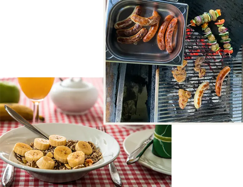 Ebenso können wir die Mahlzeiten komplett ökologisch und mit regionalen Zutaten zubereiten.